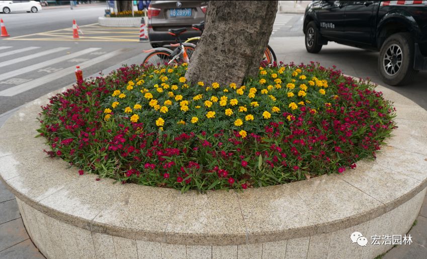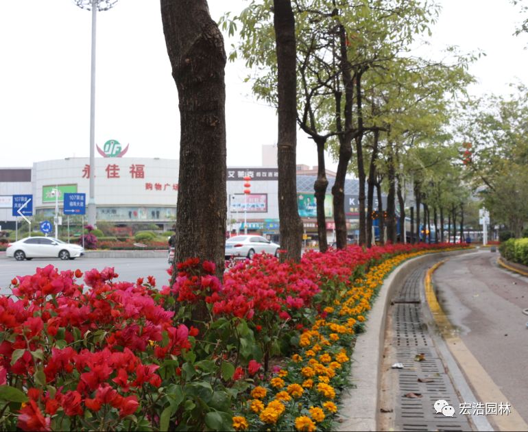 项目中标后,宏浩园林在短短12天工期内,上下员工不畏严寒、日夜兼程终于在2018狗年春节前用春日里娇艳盛开的繁花将宝安区福海街道盛装打扮。